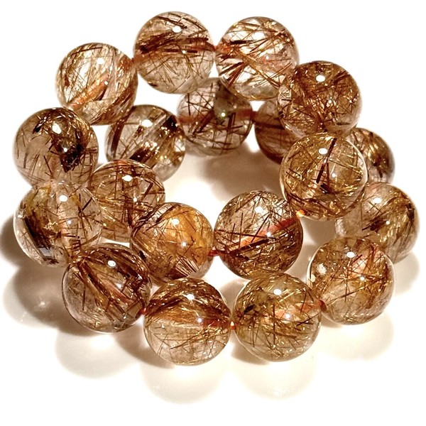 透明のクォーツの中に、鮮やかなオレンジ~赤茶色の針状鉱物(主に鉄分を含んだチタン)が入った、希少性の高いパワーストーンです。