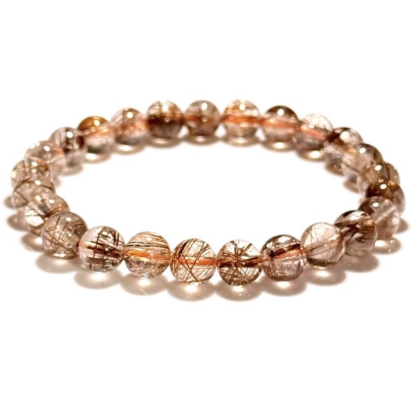透明のクォーツの中に、鮮やかなオレンジ~赤茶色の針状鉱物(主に鉄分を含んだチタン)が入った、希少性の高いパワーストーンです。