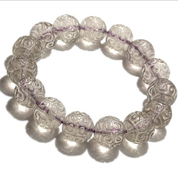 透明度が高いグレード!高品質な珍しいパープルカラーのリビアングラス回紋珠ブレスレットです!