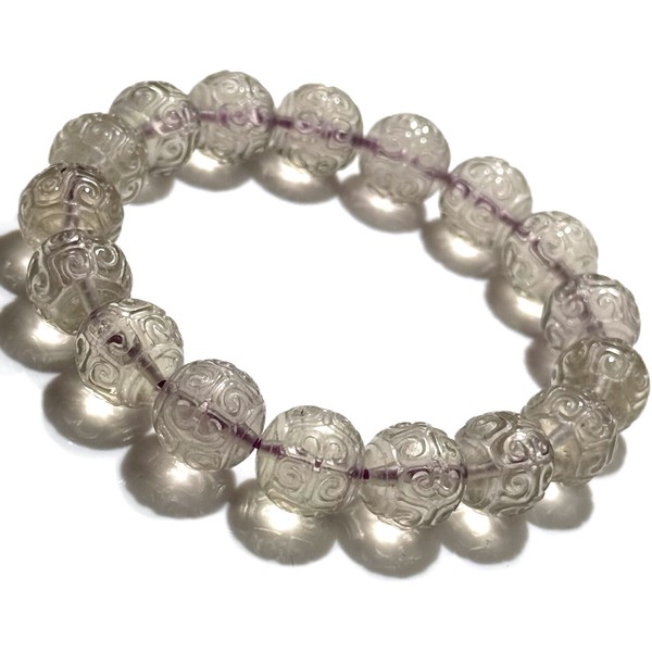 透明度が高いグレード!高品質な珍しいパープルカラーのリビアングラス回紋珠ブレスレットです!