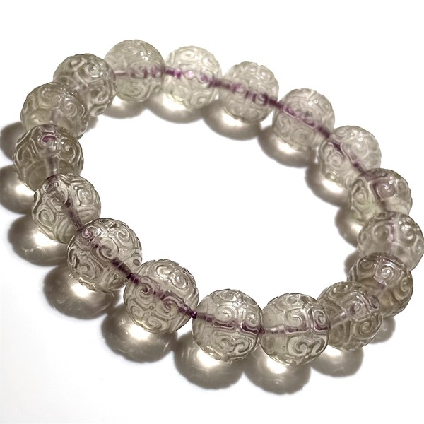 透明度が高いグレード!高品質な珍しいパープルカラーのリビアングラス回紋珠ブレスレットです!