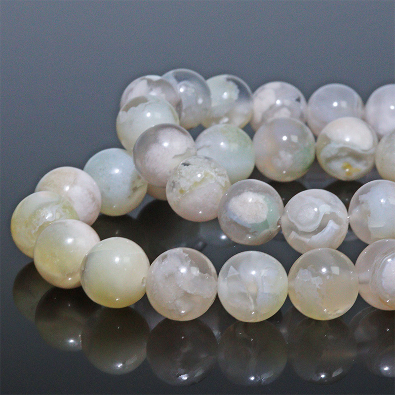 一粒一粒に異なる表情があり、自然が描いたアートのような美しさが魅力。光に透かすと、内部のフラワー模様がふんわりと浮かび上がり、やわらかく上品な印象を与えます。