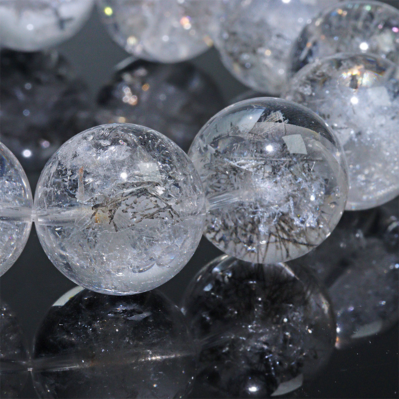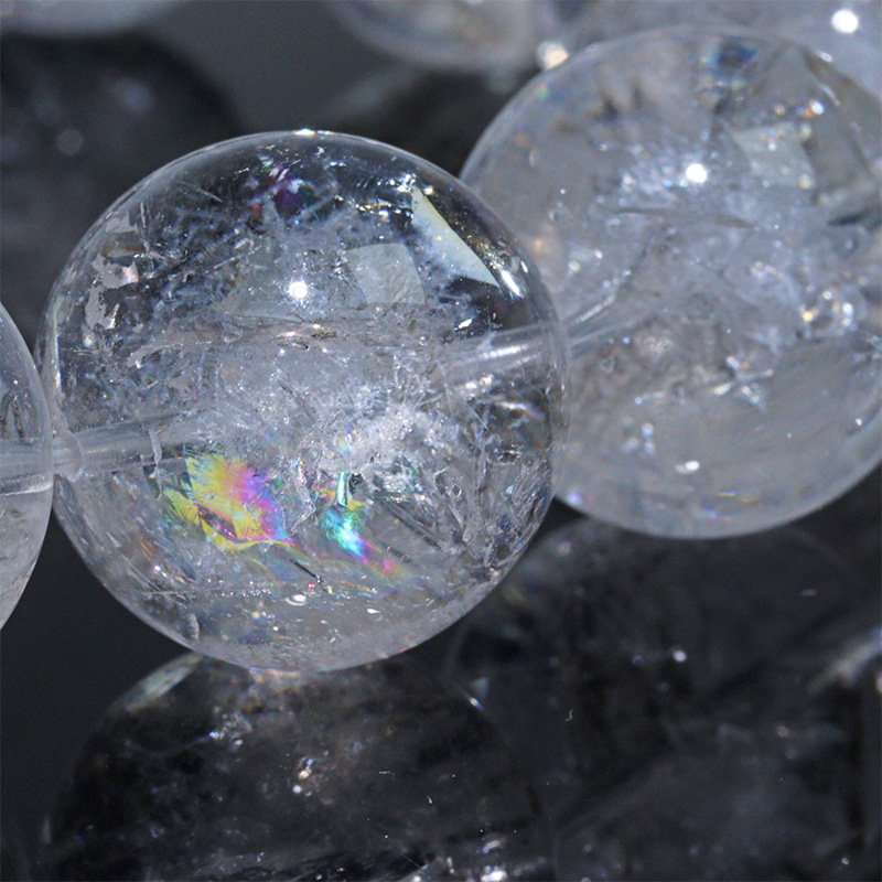 本品は天然水晶をベースに、内部へ人工的な加工を施したデザインクォーツブレスレットです。
