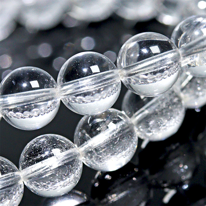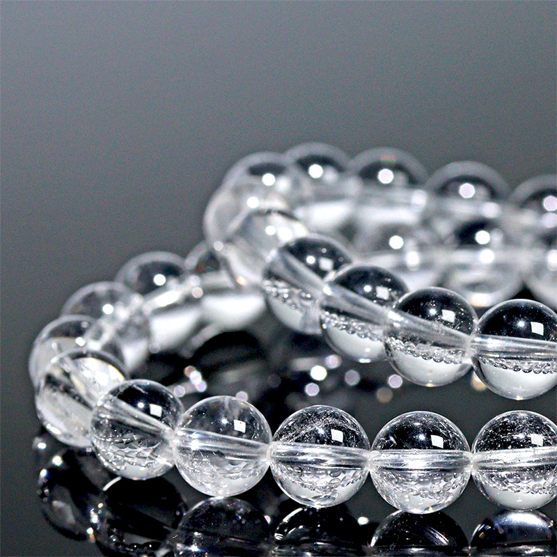このブレスレット同士をそっと触れ合わせると、シャラシャラと澄み渡る高音の音色が響きます。その音はとても軽やかで透明感があり、まるで水晶が奏でる小さな鈴のような美しい響きです。