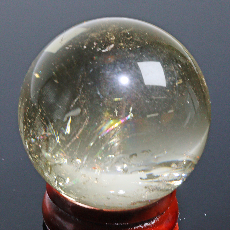 〔D471-5〕約34mm シトリン 虹入り スフィア Citrine 丸玉 黄水晶 置物 風水【メール便不可】