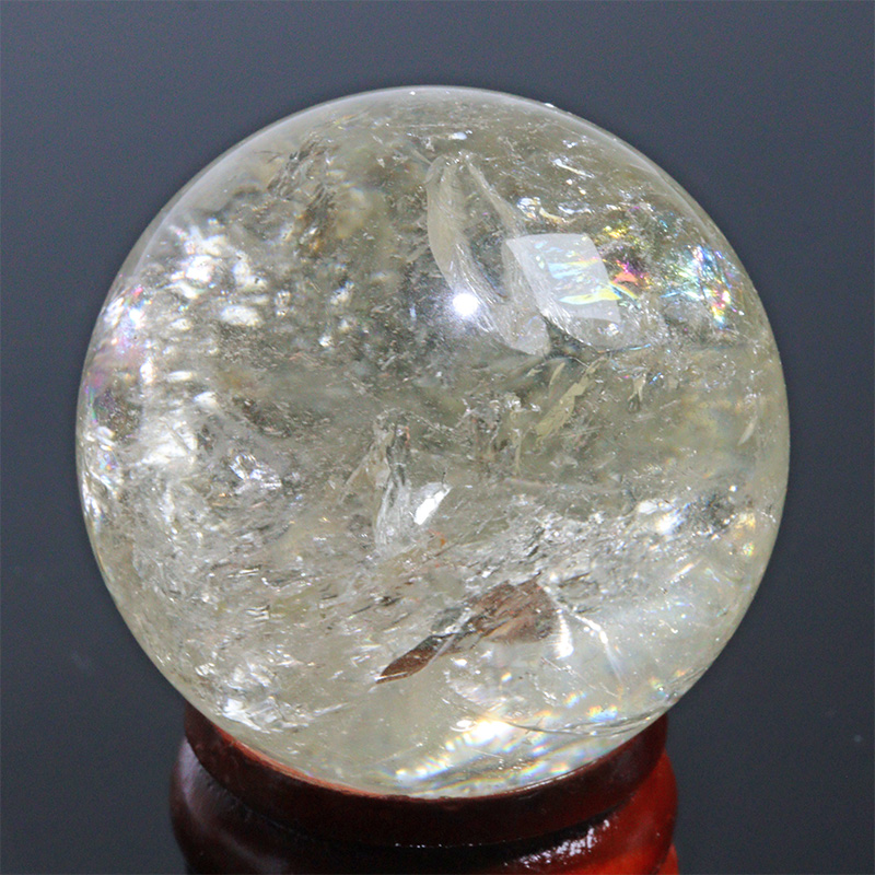 〔D471-8〕約34mm シトリン 虹入り スフィア Citrine 丸玉 黄水晶 置物 風水【メール便不可】