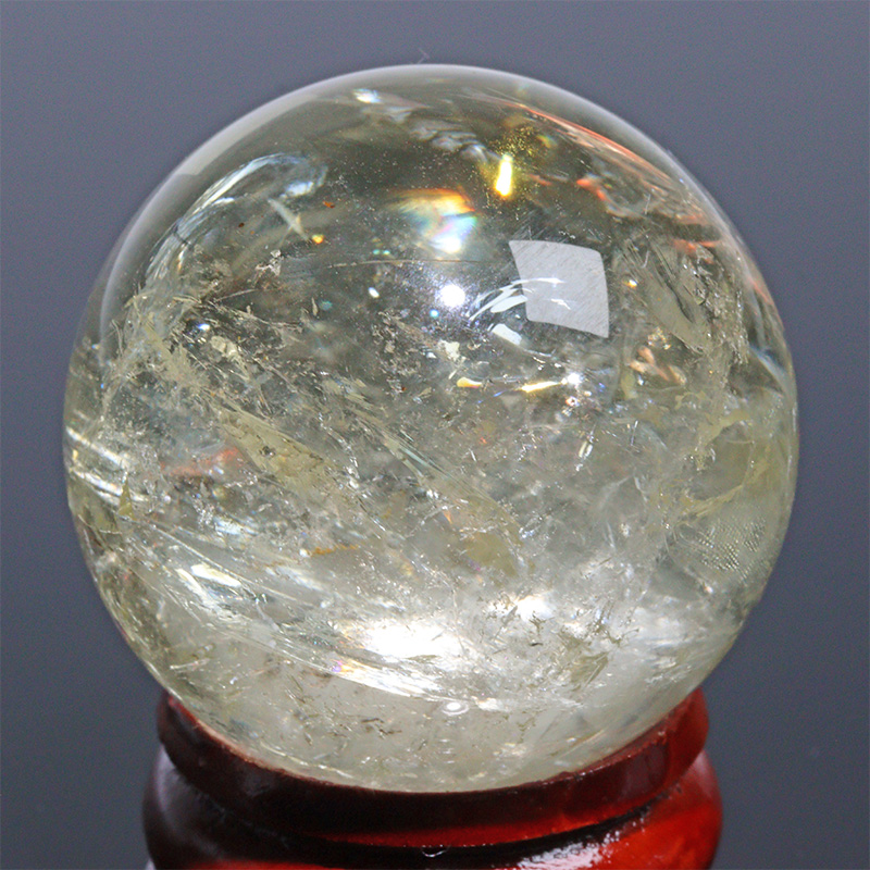 〔D471-15〕約31mm シトリン 虹入り スフィア Citrine 丸玉  黄水晶 置物 風水【メール便不可】