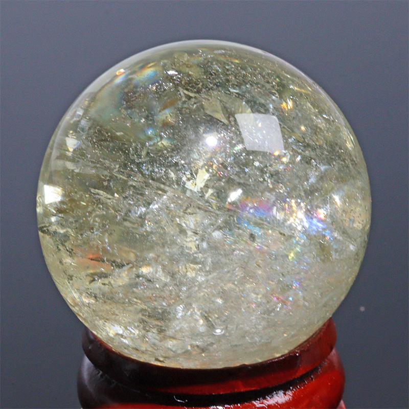 〔D471-16〕約30mm シトリン 虹入り スフィア Citrine 丸玉  黄水晶 置物 風水【メール便不可】
